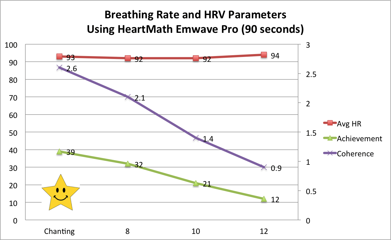 Figure 1: Chanting versus breathing at 8, 10 and 12 seconds.
