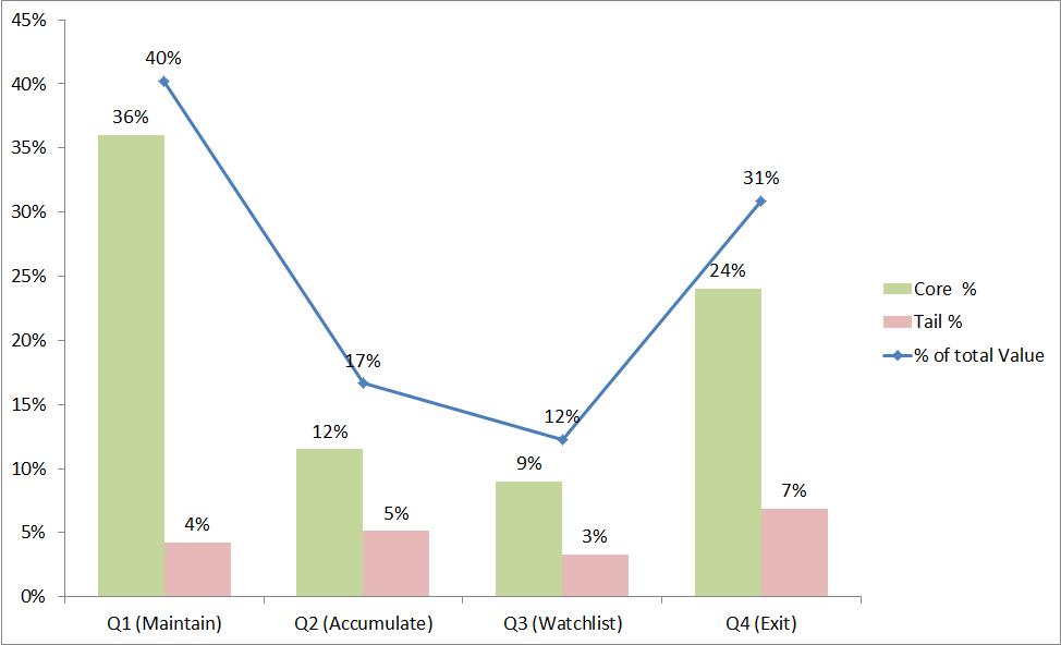 Figure 3- Quadrant-Specific data and value of “Core” and “Tail” stocks