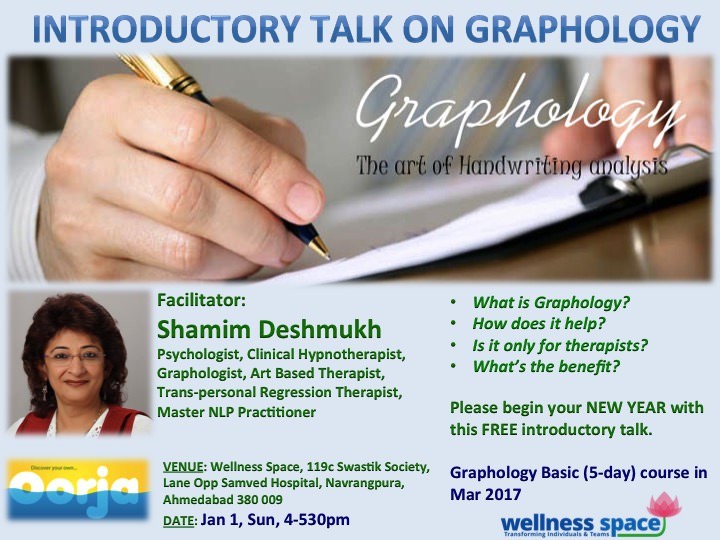 She plans to conduct a 5-day workshop (Basic Course in Graphology) in March and this is a free introduction.