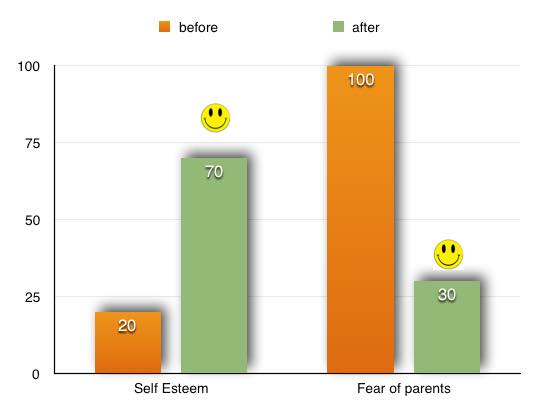 Over 4 sessions we worked on relationship with parents, age regression, Inner child work and some other hypnotherapy techniques. All her sessions were done by our Therapist Nigar Parvez. At the end of 4th session (over a period of 1 month) her Self Esteem had shot upto 7/10 and Confidence upto 8/10. Her relationship with parents had completely changed and now she feels very close to them. Her WHO Wellbeing Index rose upto 76%(from 24% at start of therapy) and Depression Index (measured using Major Depression Inventory) went down to 7/50 (which was earlier 20/50)